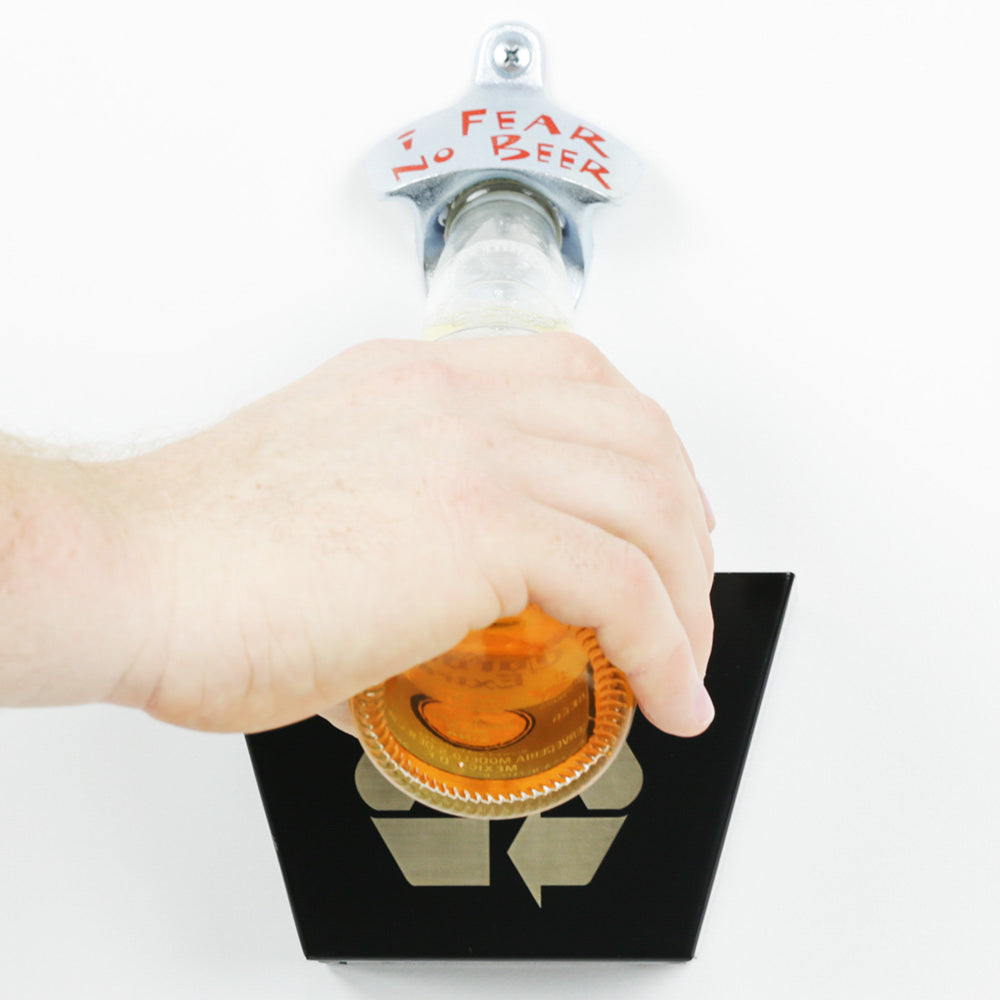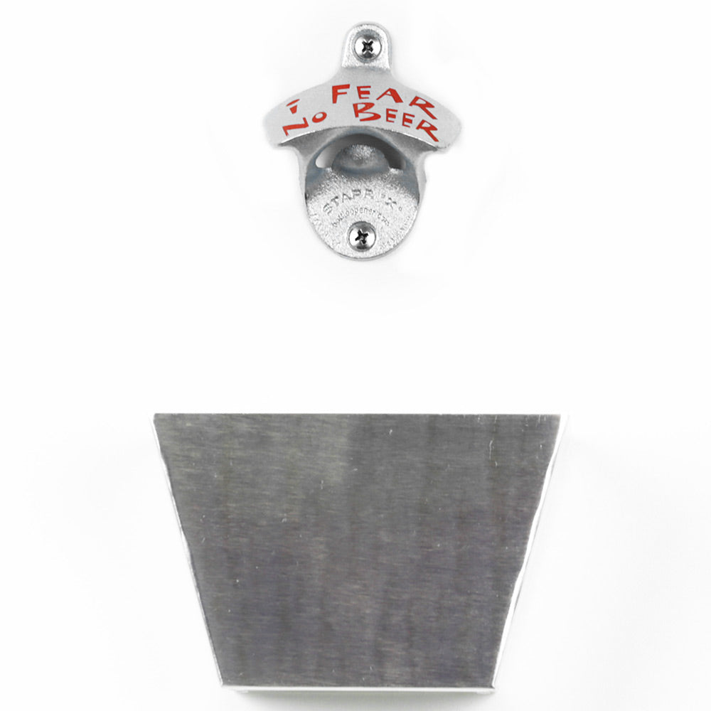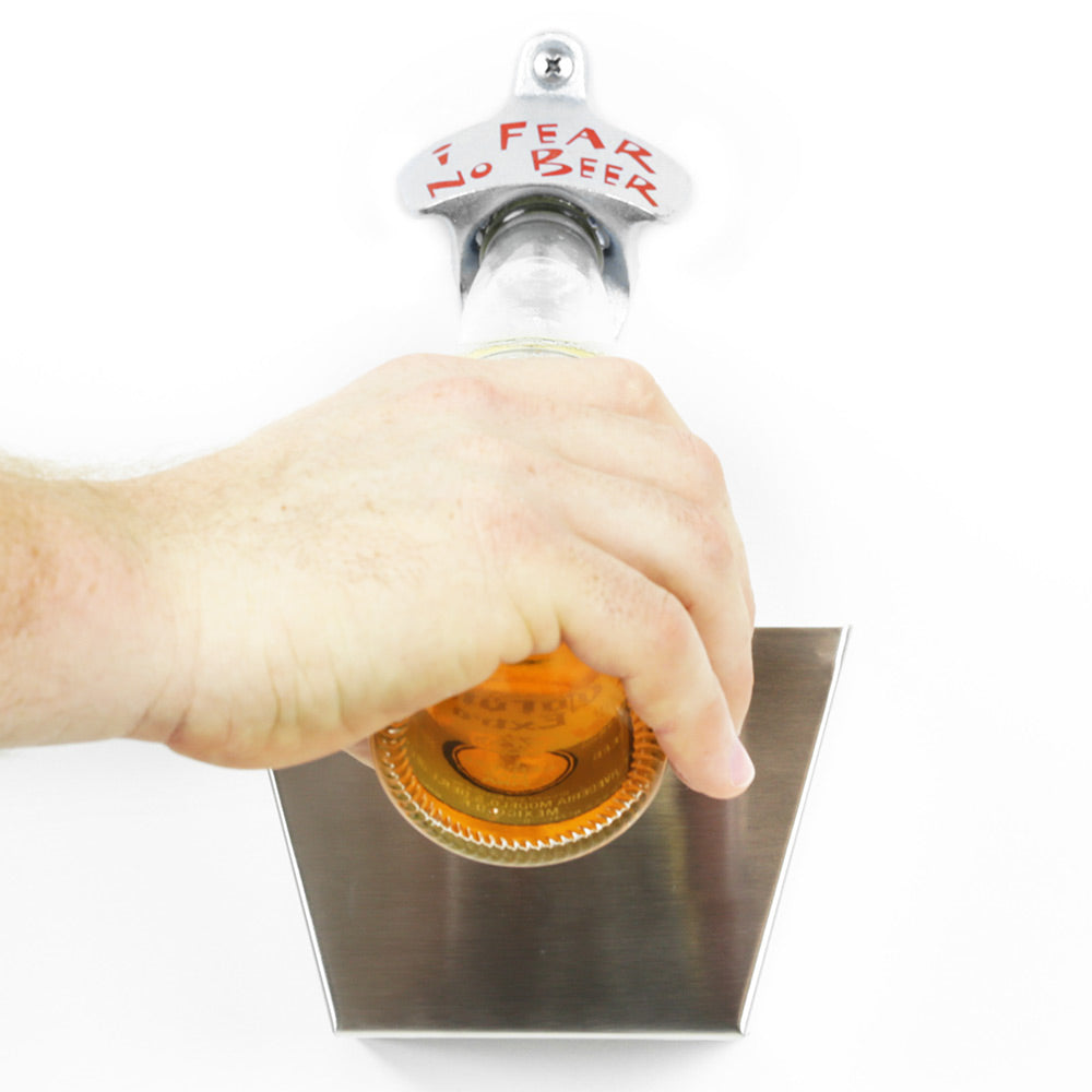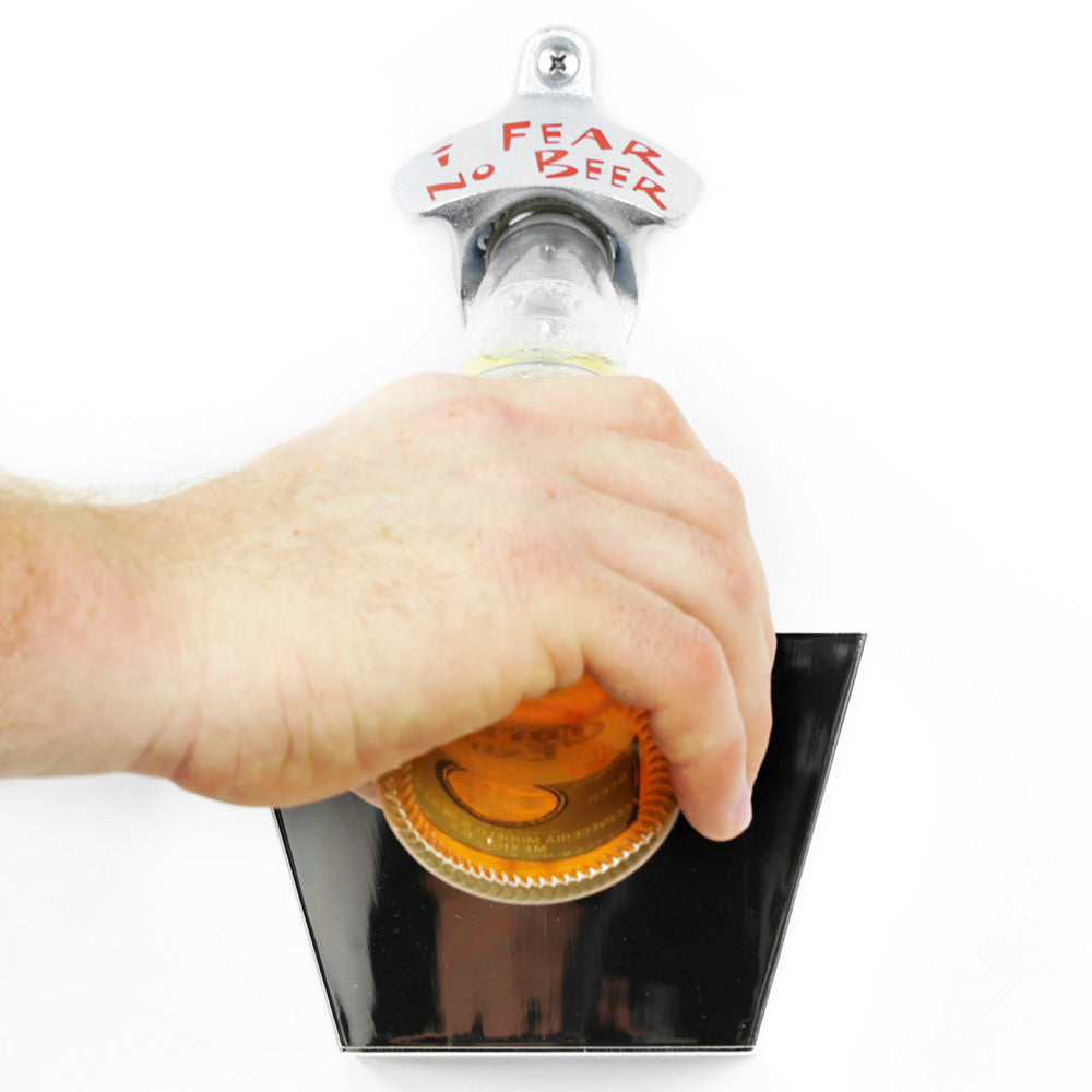 Wall Mounted Bottle Openers with Optional Cap Catcher: Theme I Fear No Beer